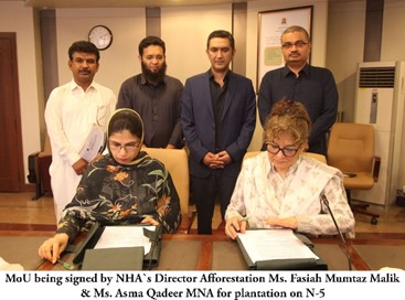 In connection with “Apni Shahrah Project” National Highway Authority signed a memorandum of understanding (MoU) with Ms. Asma Qadeer MNA at NHA headquarters here today. Under Clean and Green Pakistan programme, NHA is gradually moving forward to plant saplings along national highway and motorways network.