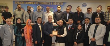 An 18-member Malaysian delegation led by the Chairman Pakistan Malaysia Business Council Datuk Seri Mohamed Nazir bin Meraslam visited the Karachi Chamber of Commerce & Industry (KCCI) to hold Business-to-Business meetings with their counterparts in Karachi. Consul General of Malaysia Herman Hardynata Bin Ahmad, President KCCI Mohammed Tariq Yousuf, Senior Vice President Touseef Ahmed, Vice President Mohammad Haris Agar, Chairman Diplomatic Missions & Embassies Liaison Subcommittee Zia ul Arfeen, Former President Majyd Aziz, Managing Committee Members and businessmen mostly from food processing, commodities, cosmetics, chemicals and other sectors were also present on the occasion.