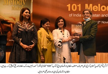 The Arts Council of Pakistan in Karachi launched the book “101 Melody Makers” by Sultan Arshad Khan based on the services of music teachers, composers, and instrumentalists at the Arts Council Auditorium. Leading intellectual and writer Javed Jabbar, President Hum Network Sultana Siddiqui, President Arts Council Muhammad Ahmad Shah, Arshad Mahmood, SM Shahid, and actress Bushra Ansari expressed their views at the unveiling ceremony.