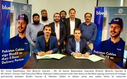 BlueEx Courier signed a MoU with Pakistan Cables Limited to become the exclusive courier company for Pakistan’s first wires and cables estore, recently launched by Pakistan Cables.