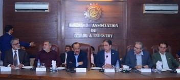 Photo Caption: KATI President Johar Qandhari addresses a joint press conference. FPCCI Senior Vice President Saqib Fayaz Maggo, Zubair Chhaya, Tanveer Bari, Anjum Nisar, and Javed Balwani are also present.