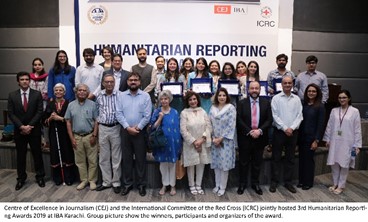 Awards were conferred on seven journalists for outstanding contributions in humanitarian reporting at the Humanitarian Reporting Awards, 2019, on 24th October. The Awards were jointly organized by the Centre for Excellence in Journalism at the Institute of Business Administration (CEJ-IBA), Karachi and the International Committee of the Red Cross (ICRC).