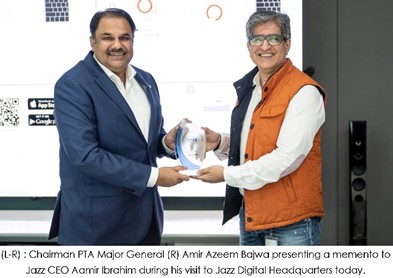 Chairman Pakistan Telecommunications Authority (PTA) Major General (R) Amir Azeem Bajwa; Muhammad Naveed (Member Finance); Dr. Khawar Siddique Khokhar (Member Compliance & Enforcement) and other senior members of PTA visited Jazz Digital Headquarters yesterday. Jazz’s executive leadership team presented a detailed corporate overview, its commitment to 4G acceleration, especially in underserved areas.