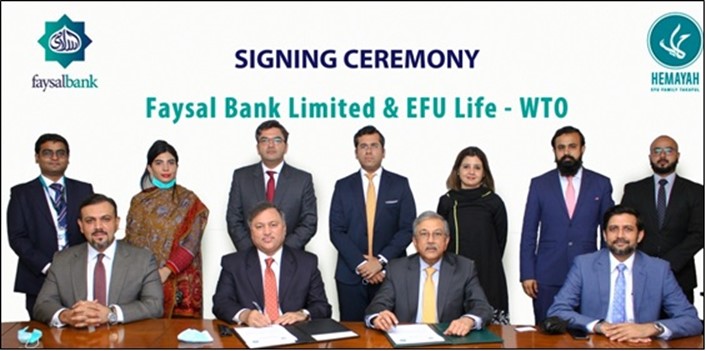 The signing ceremony was attended by Mr. Tahir Yaqoob Bhatti, Head Retail Banking, Faysal Bank Ltd. and Mr. Tahir G. Sachak, MD & Chief Executive Officer, EFU Life Window Takaful Operations along with the core product teams.