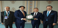 Syed Mazhar Ali Nasir, SVP FPCCI is Presenting FPCCI crest to H.E. Mr. Fuat Oktay Vice President of Turkey while Mr. M. Rifat Hisarcıklıoğlu, President of ToBB and Dr. Iqbal Thaheem, Secretary General FPCCI.