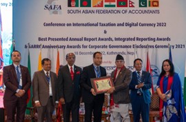 Mr. Omer Farooq, Chief Financial Officer and Group Head – Finance & Accounts at Jubilee Life Insurance received the Certificate of Merit in the Insurance category at the South Asian Federation of Accountants (SAFA) Best Presented Annual Reports Awards 2021 ceremony held in Kathmandu, Nepal.
