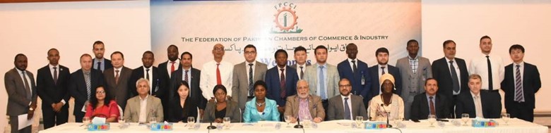 Mr. Tariq Haleem, Vice President FPCCI, Syed Ibne Abbas, Director General Foreign Service Academy along with Junior Foreign Diplomats from different countries are also seen in the picture.