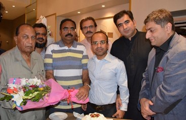 Photo Captionm: Former Senior Vice President of KATI Salman Aslam hosted a luncheon in the honour of leader of the business community SM Muneer, on the occasion a flower bouquet was presented to him. Also seen in the picture are Sheikh Umer Rehan, Zubair Chhaya, Ikram Rajput and Syed Wajid Hussain.