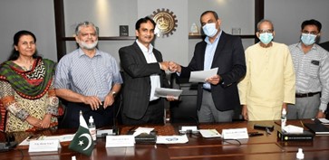 Photo caption: KATI President Saleem-uz-Zaman and Data Sink Chief Executive Officer Razzaq H. Paracha exchange documents after signing a memorandum of understanding. KATI Senior Vice President Zaki Ahmed Sharif, Vice President Nighat Awan, Nihal Akhtar and Farhan Hassan were also present on the occasion.