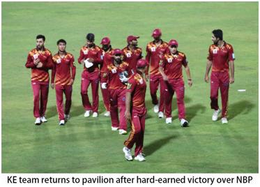 K-Electric (KE) defeated National Bank of Pakistan (NBP) by 51 runs in their second match of the 7th Corporate T20 Cup, held at Moin Khan Academy, Karachi. A score of 56 runs by Ramiz Aziz, who was well supported by Umair Yousuf with 35 runs, enabled KE to set a respectable target of 172 runs. KE bowlers, Muhammad Imran, Agha Salman, and Mohammad Mohsin successfully defended the total by taking three wickets each to bowl out the opposing team.