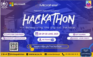 Microsoft Learn Student Ambassadors Pakistan – (MLSA), the renowned technology community, collaborated with Higher Education Commission (HEC) to initiate Pakistan first National Digital Hackathon under the theme of “Reimagining the Digital Pakistan”. This three day hackathon starting from 28th till 30th June 2021 is designed to enable students to use technology, to accomplish an objective, by solving a real-world problem scenario.