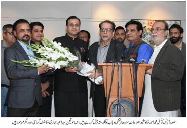 He was addressing to the thesis show of the passed out students of Arts Council of Pakistan Karachi. On the occasion, president Arts Council of Pakistan Muhammad Ahmed Shah was also present with him. He congratulated and appreciated the passed out students and said that he will personally and Sindh government will play their role for students to create opportunities in the different sectors. Arts Council of Pakistan is playing a great role in promoting the culture of Sindh and Pakistan, Sufism and the positive image of Pakistan he further added. He observed the paintings, textile design and digital designing of thesis show presented by the students.