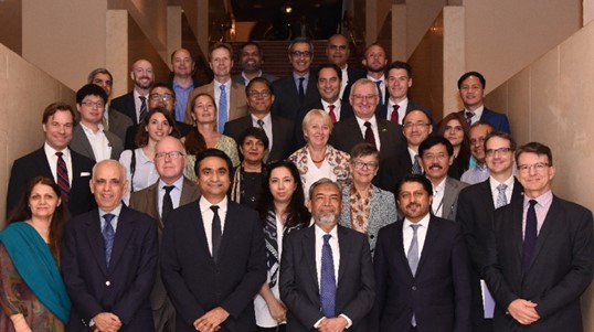 The photo shows Irfan Wahab Khan, President OICCI, along with H. E. Ikram Mohammad Ibrahim from High Commission of Malaysia, H. E. Ardi Stoios-Braken, Ambassador of the Kingdom of the Netherlands, H. E. Kjell-Gunnar Eriksen, Ambassador of Royal Norwegian Embassy, H. E. Margaret Adamson, Ambassador of Australian High Commission, amongst senior diplomats and dignitaries including Member Committee OICCI.