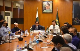 Mian Nasser Hyatt Maggo, President FPCCI, is addressing an awareness session on Amazon selling from Pakistan at Federation House. Mr. Ather Sultan Chawla, VP FPCCI and Mr. Imran Khalil Naseer, Chairman, Pak-UK Business Council of FPCCI are also present on the occasion.