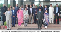The participants of Senior Management Course led by Maj (r) Attique Arshad visited head office of National Authority (NHA). NHA’s Member Planning Asim Amin gave a detailed briefing to the visiting guests on working of the Authority. It was told that NHA controls 13070 km long road network, which is only 4.6% of the total roads of the country. However, 80% of commercial traffic is attached to NHA’s network.