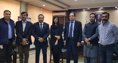 Photo caption: A group of PLGMEA Chairman Danish Khan, Joint Secretary Environment Suleiman Khan, Fawad Ijaz Khan, Irfan Iqbal, Atif Ashraf and Chaudhry Ahmad Zulfiqar Hayat took part in a meeting with Minister of State for Climate Change Zartaj Gul in Islamabad.