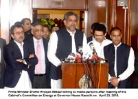 Keeping in view the serious power crisis in the Karachi port city, Prime Minister Shahid Khaqan Abbasi chaired a meeting of the Cabinet Committee on Energy at the Governor House in Karachi today. The meeting was attended by Governor Sindh, Chief Ministers of Sindh and Punjab, Federal Minister for Power, Minister of State for Power, Adviser to PM on Finance Miftah Ismail and senior officials.