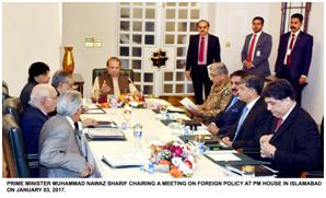 Prime Minister Muhammad Nawaz Sharif on Tuesday reviewed the country’s foreign policy viz-a-viz current regional and global challenges. “The meeting reviewed bilateral and multi-lateral relations with neighbouring countries, future road-map for regional stability and maintenance of mutually beneficial relations with all countries in the region and beyond,” a PM’s Office statement said.