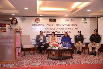 Mr. Murtaza Wahab, Advisor to Chief Minister on Law, Government of Sindh, Karachi who was the chief guest at the event, spoke on the need to strengthen rule of law institutions through technical assistance, development of a policy to build capacity and enhance skills of justice providers. He also stressed that civil society should play a part in government efforts to improve rule of law.