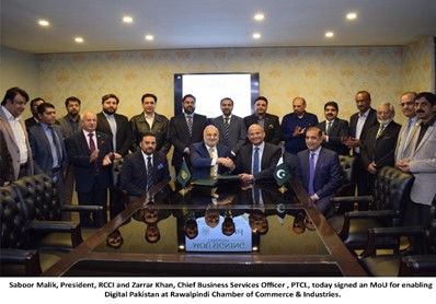 Pakistan Telecommunication Company Limited (PTCL), has signed a MoU with the Rawalpindi Chamber of Commerce and Industries (RCCI) to establish a strategic partnership that offers state-of-the-art digital services from PTCL to business community associated with Rawalpindi chamber.