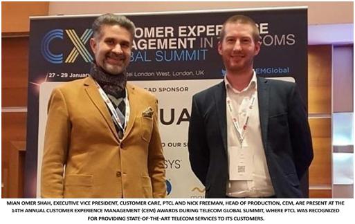 Pakistan Telecommunication Company Limited (PTCL) has been recognized this year for implementing ‘Customer Happiness Index Framework’ at the 14th Annual Customer Experience Management (CEM) Awards held in London during Telecom Global Summit.