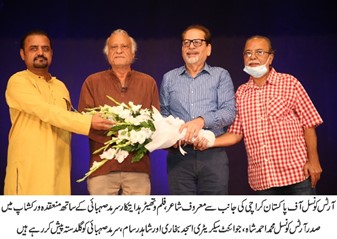 Concluding the event President Arts Council M.Ahmed Shah, Joint Secretary of the council Asjad Bukhari, & Principal of ACIAC Mr. Shahid Rassam presented the bouquet to Sarmad Sehbai. It should be noted that Mr. Sehbai is one of the most theatre film directors & also he is a great poet. His dramas Naya qanoon, Toba Tek Singh & gained the highest popularity, and his film “Mah-e-Mir” was nominated at foreign language academy awards in 2016.