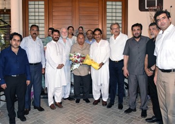 Photo caption: President KATI Saleem-ul-Zaman presents a bouquet of flowers to SM Muneer at a dinner hosted by him in honor of UBG Patron-in-Chief SM Muneer. Senators Abdul Haseeb Khan, Zubair Chhaya, Farhan-ur-Rehman, Zahid Saeed, Masood Naqi, Sheikh Umer Rehan, Nighat Awan, Salman Aslam, Ikram Rajput and Maheen Salman are also present on the occasion.