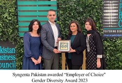 Syngenta Pakistan Limited, a leading agriculture innovation and technology company that provides crop protection, seeds, biologicals and digital services to millions of Pakistani farmers, has been awarded the “Employer of Choice” Gender Diversity Award 2023 by the Pakistan Business Council (PBC) and International Finance Corporation (IFC) in a high-powered award ceremony which was held in Karachi.