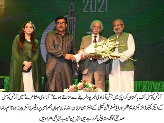 The Azadi Mushaira was presided by Dr. Khursheed Rizvi from Lahore via zoom whereas Dr. Peerzada Qasim Raza Siddiqui was the chief guest of the evening. Mushaira was conducted by the chairperson of the literary committee of the Arts Council, Dr. Ambreen Haseeb Amber.
