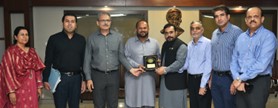 Photo Caption: KATI President Faraz-ur-Rehman presenting a shield to Korangi Town Chairman Naeem Sheikh. Zubair Chhaya, Rehmatullah Sheikh, Nighat Awan, Johar Qandhari, and Sheikh Umar Rehan are also present.