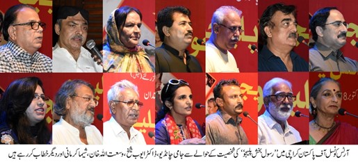 The famous theatre director Sheema Karmani said that, Rasool Bukhsh Chandio always spoke for women as he was the only person who stands before the women to help them. In this event Abdul Qadir Anto, Hoor-un-Nisa Palejo, Aslam Azad, Madad Ali Sindhi, Gul Hassan Kalmati and many other commented on the life of Rasool Buksh Palejo. At the end of the day Sheema Kermani Performed a theatre dance which represent the culture of Sindh. The houseful event was observed by many famous personalities of Sindh province.