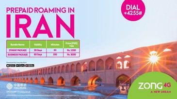 Zong is offering two types of IR bundles for Iran to meet the varying communications needs of Pakistani travelers: the Iran Ziyarat Package and the Iran Business Package.