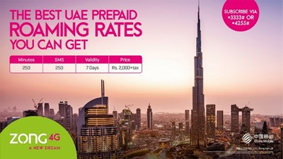 As the industry-leader in international roaming, Pakistan’s leading telecom and digital services provider, Zong 4G, has now come up with an unbeatable UAE International Roaming Power offer for its prepaid users.
